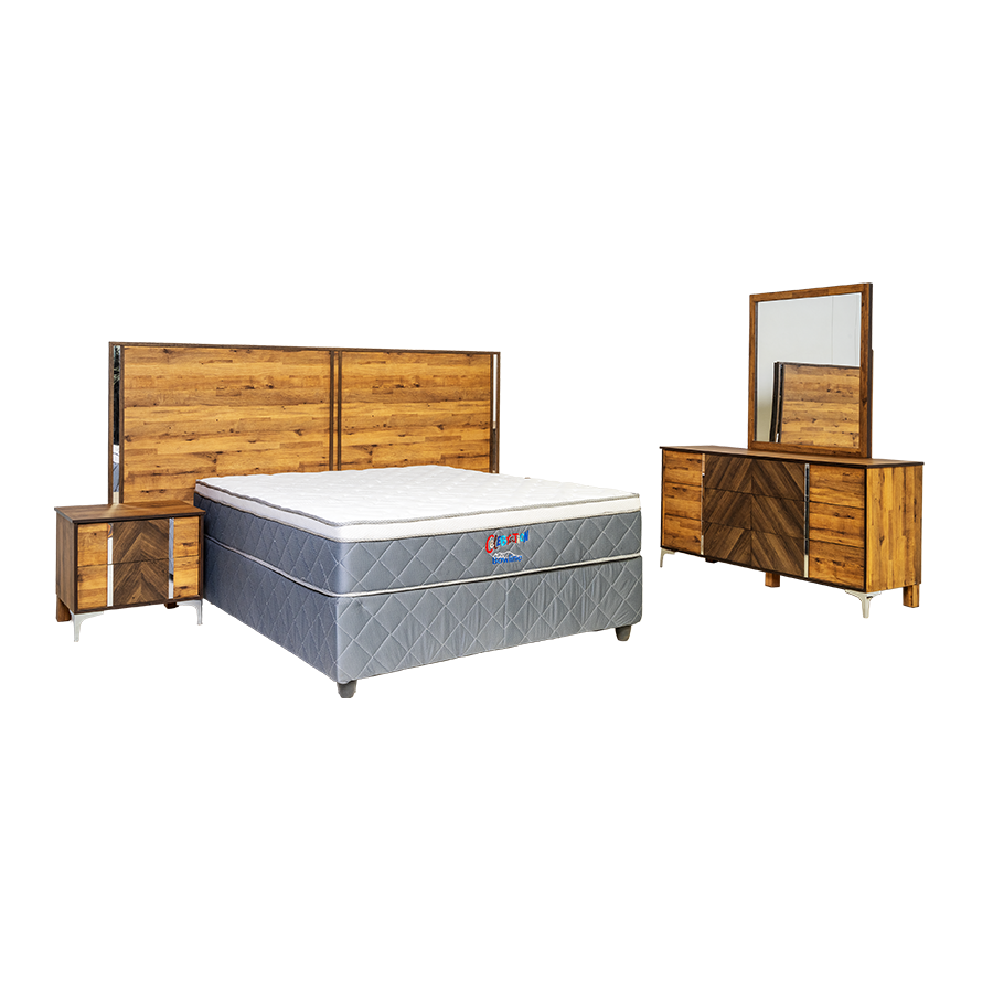 A 5-piece two tone bedroom suite that offers a little more traditional and elegant textured wood finish.