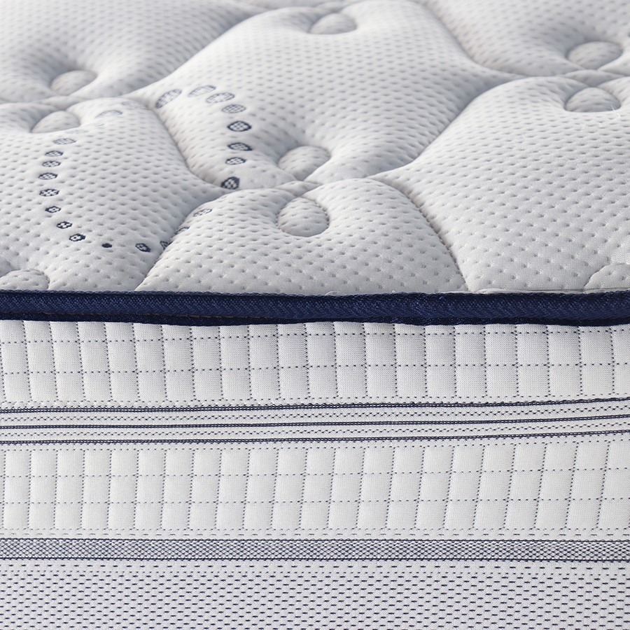 The mattress top is produced with an imported fabric with a high thread count, and the springs are Bonnel springs. To maintain comfort, support, and all of the layers, the mattress is completely covered in a tight-knit cloth. The Atlantis mattress has a beautiful blue and white colour. This mattress is firm and comes additionally with corner and side supports.