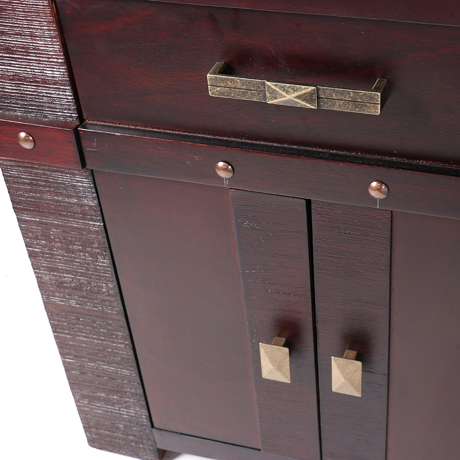 The Claremont Bedroom Suite is for those with discerning taste. An all wood suite with an espresso finish this suite features a large button detail on the headboard and beautiful brass handles on the side tables and dresser.