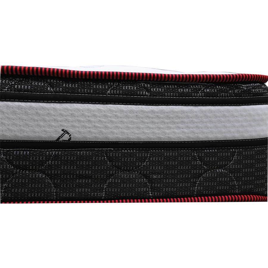 Moderately firm, bed set with no-turn mattress. Constructed around Bonnell spring technology with corner supports to prevent sagging Viracon is used to cover the spring unit and give added comfort and support. The mattress sits on a solidly constructed base.