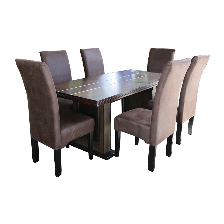Made from the finest selected timber. Has a beautiful table and sturdy centre legs. The 6 chairs are well constructed with high backrests for full back support and offer fabric upholstered, padded seats for comfort.