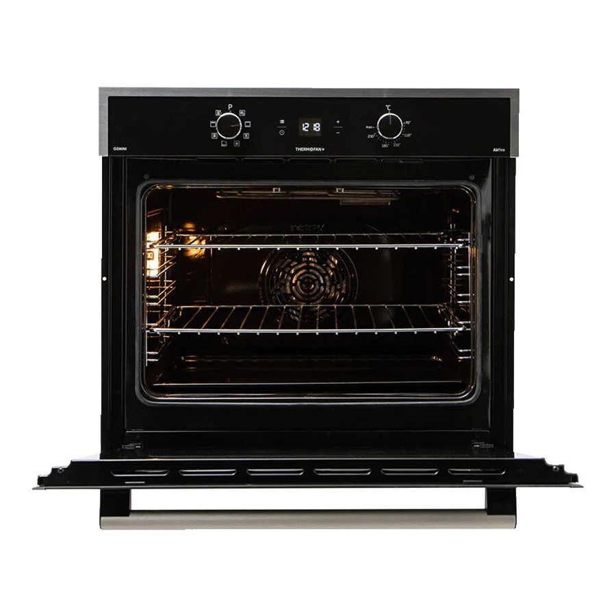 Stylish design, sophisticated technology and user-friendly practicality combine in the Defy Gemini Thermofan+ Eye-Level Black Oven to create the perfect kitchen addition. No matter what your cooking style, the incredible Thermofan+ technology of this Defy appliance will ensure consistent heat distribution through a redesigned fan and improved venting system. This means that any dish prepared in the multifunction oven, from Sunday roasts through to layered cakes, will emerge cooked to perfection. When it comes to aesthetics, the oven comes with chromed shelves, an aluminium handle and cool touch double glass doors. Defy also takes the hassle away from cleaning with the enamel oven interior requiring a simple wipe down!