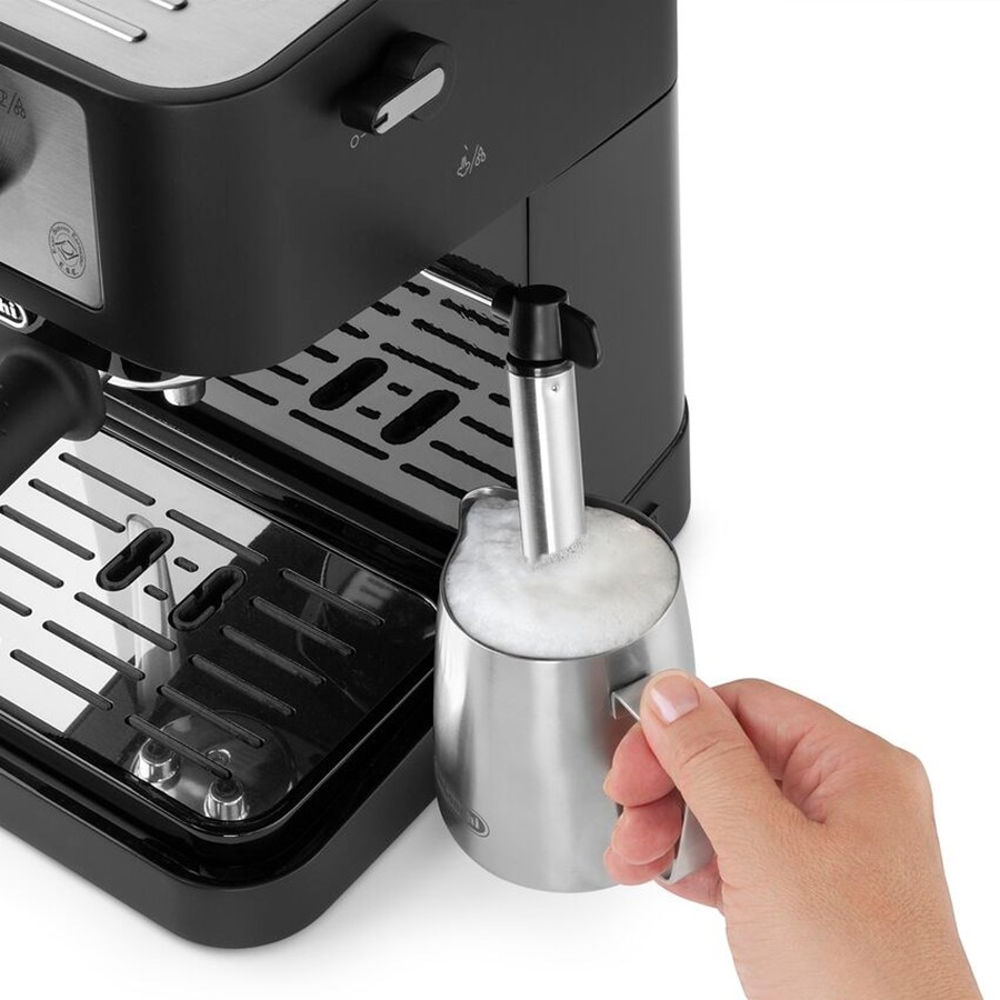 This manual machine is designed to provide an easy brewing experience of authentic specialty drinks: latte, cappuccino and espresso. The 15 bar pump pressure and durable stainless steel boiler ensure perfect extraction of espresso.