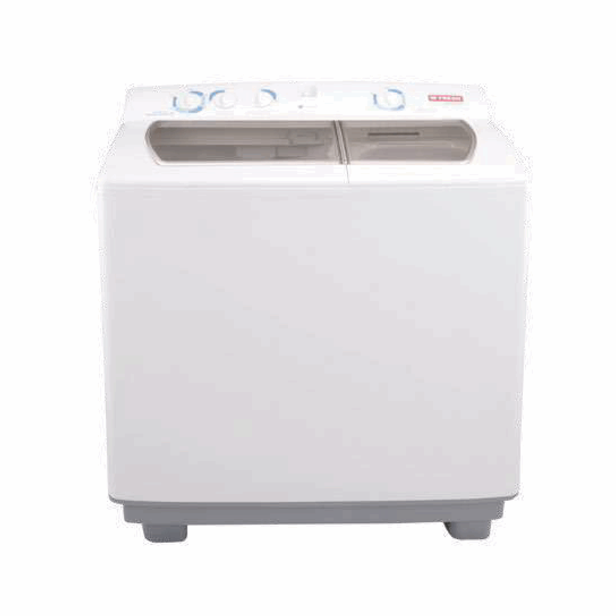 Twin tub washing machine which has a lint filter, spin drum and pump. It automatically stops after it finishes its cycle.