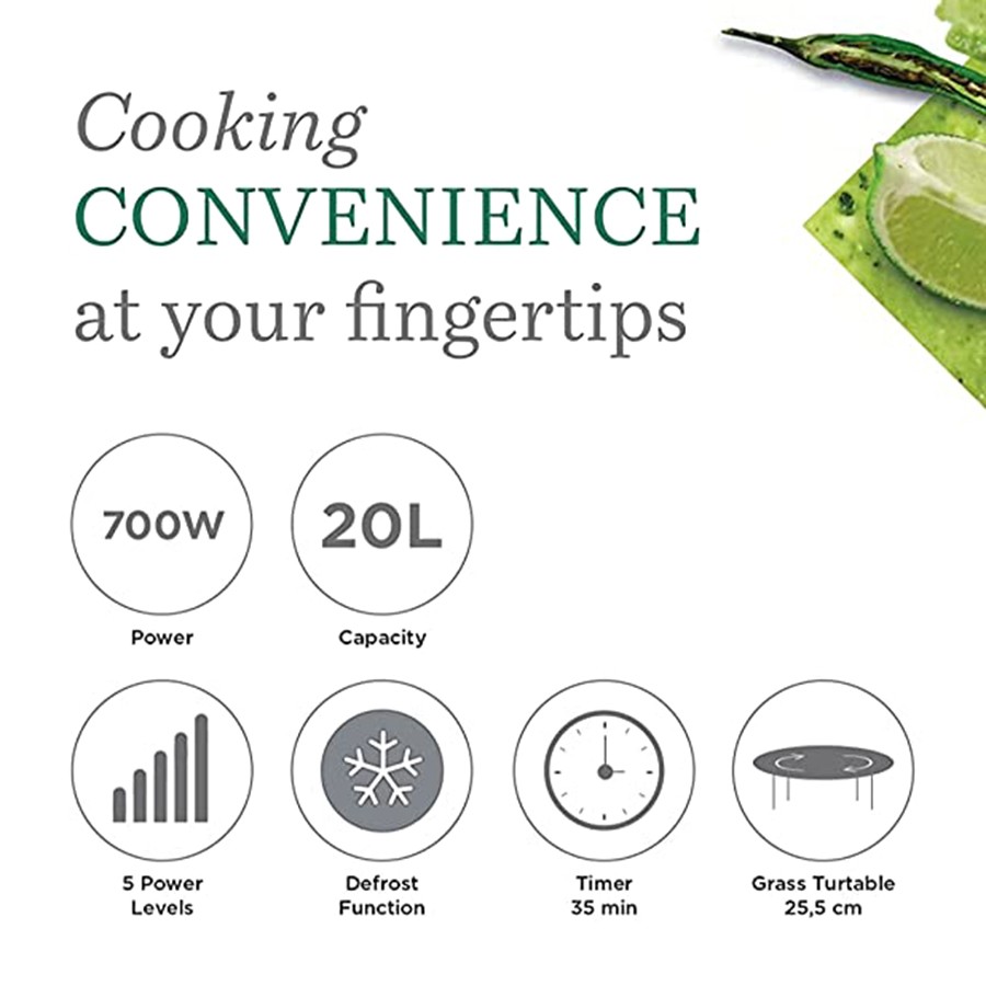 700W, Microwave ideal for heating, cooking, warming various dishes in short time