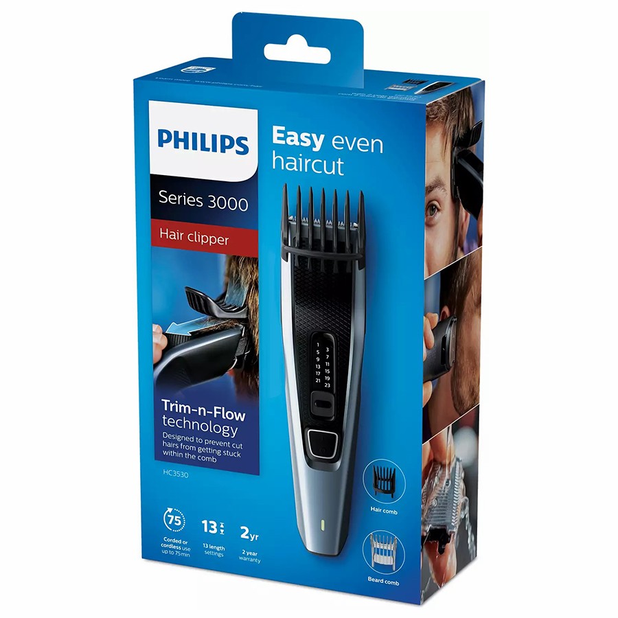 Get an easy haircut, quick and easily. DualCut technology with self-sharpening blades clips twice as fast*. Trim-n-Flow technology features a comb designed to prevent clogging – so you can finish your style in one go.