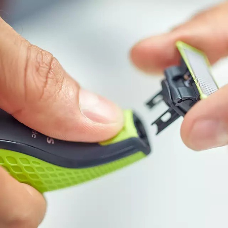 The Philips OneBlade is a revolutionary new hybrid styler that can trim, shave and create clean lines and edges, on any length of hair. Forget about using multiple steps and tools. OneBlade does it all.