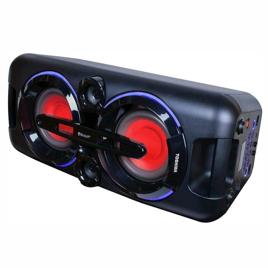 Toshiba presents a portable rechargeable speaker that is equipped with Bluetooth and USB playback. Super bass will deliver a more powerful Deep bass which makes it perfect for the use indoor and outdoor. LED lights flash to the beat of the music.