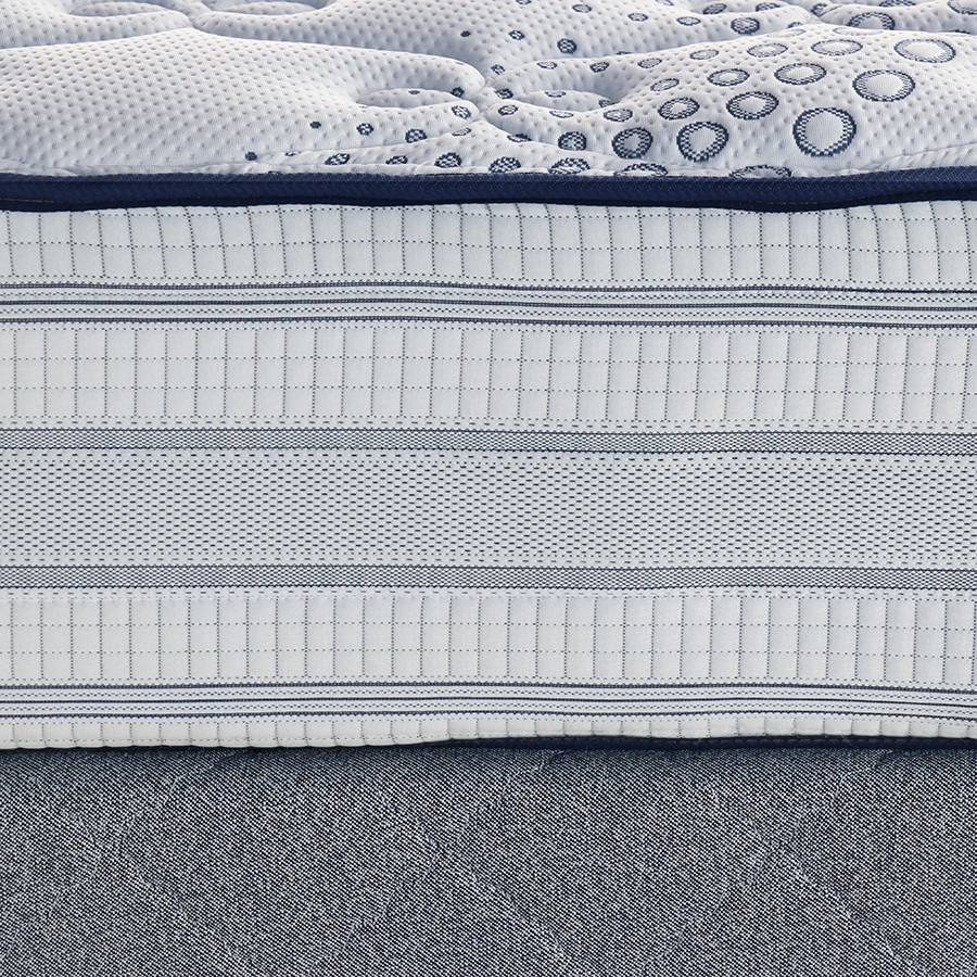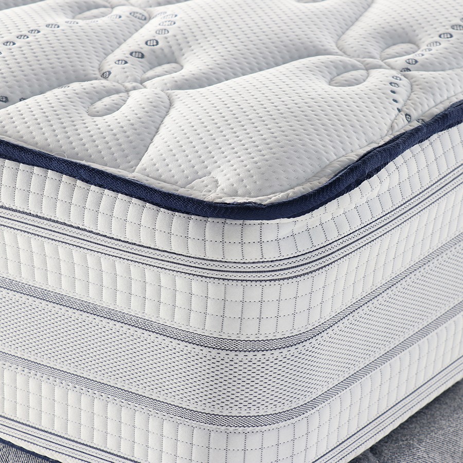 The mattress top is produced with an imported fabric with a high thread count, and the springs are Bonnel springs. To maintain comfort, support, and all of the layers, the mattress is completely covered in a tight-knit cloth. The Atlantis mattress has a beautiful blue and white colour. This mattress is firm and comes additionally with corner and side supports.