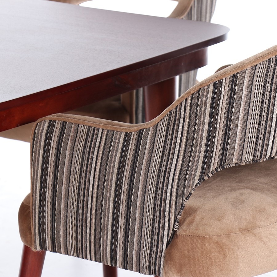 5 piece – comes in a teak finish with padded chairs, comfortable for a small home.