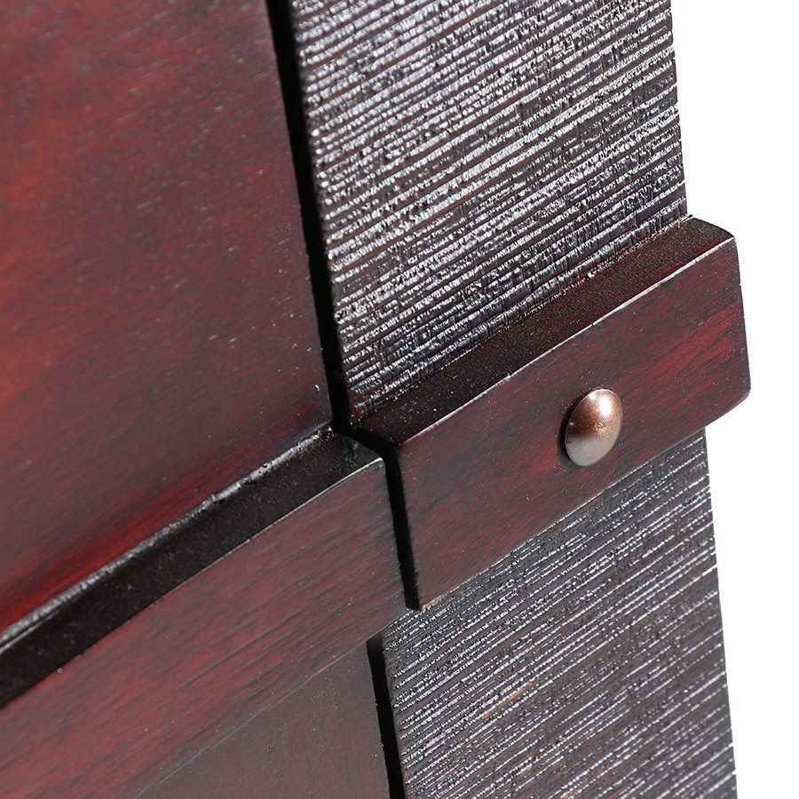The Claremont Bedroom Suite is for those with discerning taste. An all wood suite with an espresso finish this suite features a large button detail on the headboard and beautiful brass handles on the side tables and dresser.