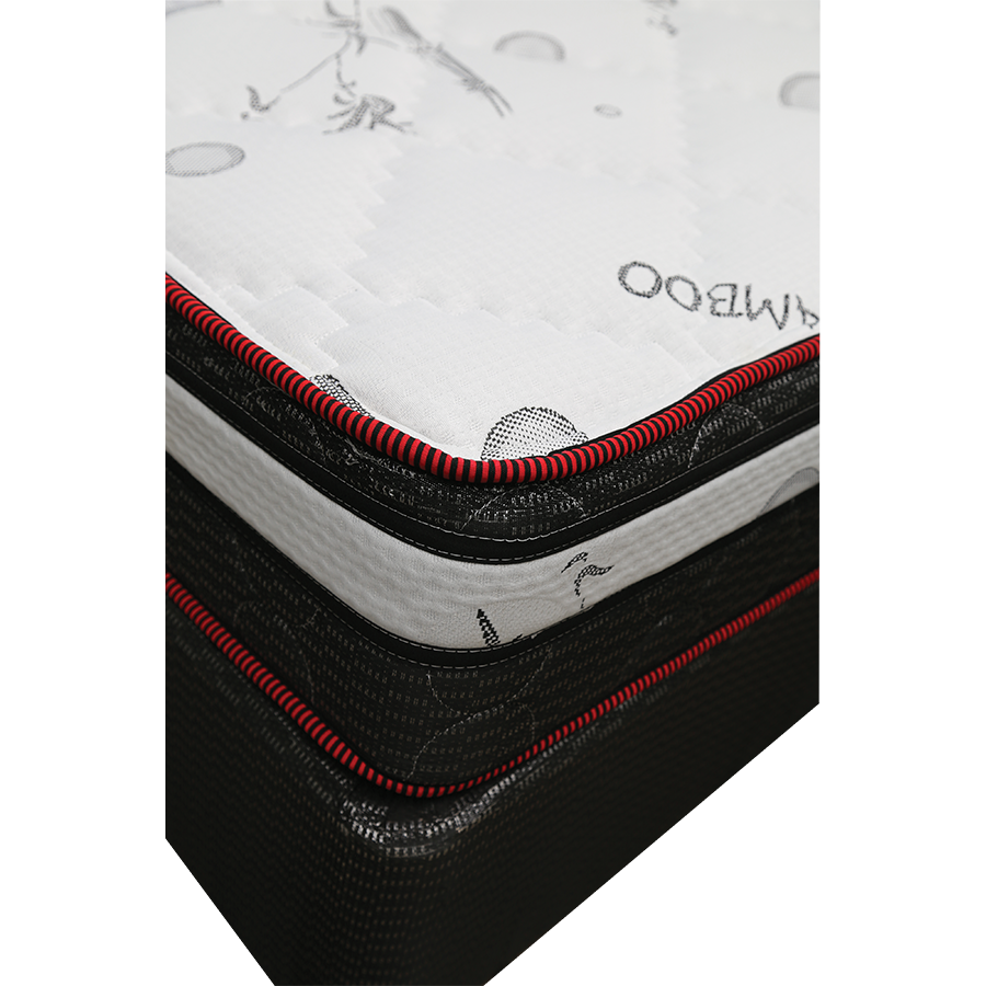 Moderately firm, bed set with no-turn mattress. Constructed around Bonnell spring technology with corner supports to prevent sagging Viracon is used to cover the spring unit and give added comfort and support. The mattress sits on a solidly constructed base.