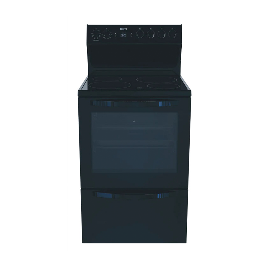 Enjoy all the features of the Defy Kitchenaire Electric Stove with 4 Vitroceramic plates and an impressive 71L oven volume. Its sleek design and black ceramic glass finish make a style statement in your kitchen while the practical utility drawer keeps things tidy.