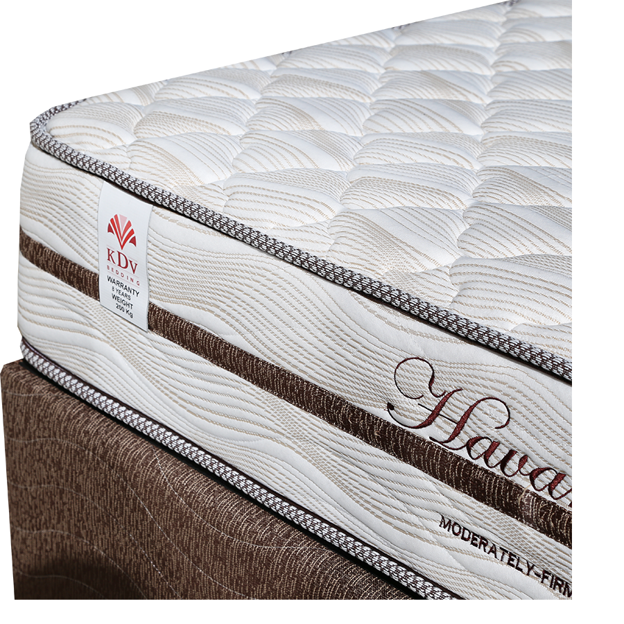 Moderately firm, bed set with no-turn mattress. Constructed around Bonnell spring technology with corner supports to prevent sagging Viracon is used to cover the spring unit and give added comfort and support. The mattress sits on a solidly constructed base.