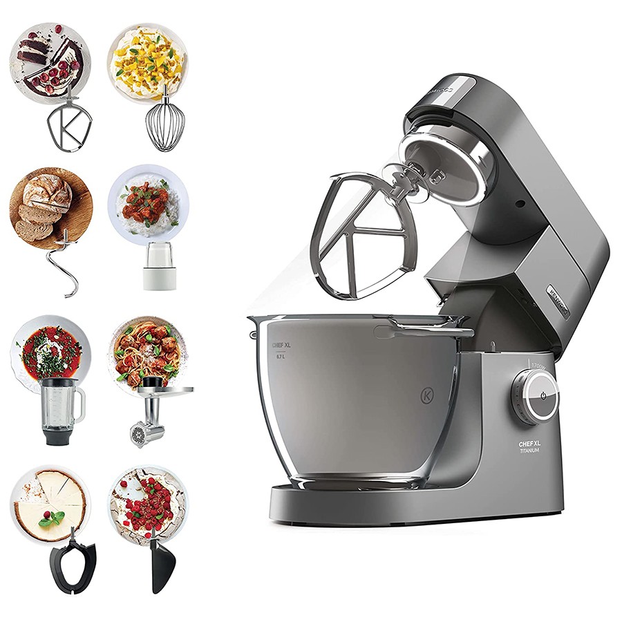 Try out all your most anticipated recipes from the popular chefs using the Kenwood Chef Titanium Kitchen Machine. The set includes a glass blender, a meat grinder, and a mini chopper for all kinds of meal preps. The Kenwood Chef kitchen machine is additionally accompanied by a set of nonstick baking tools for preparing a variety of mouth-watering confectioneries.