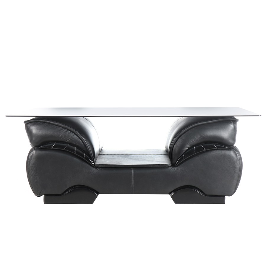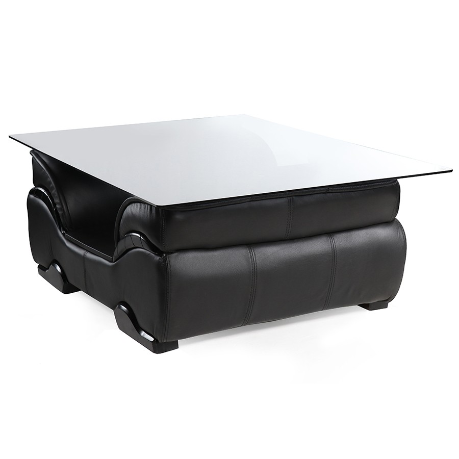 Glass top(tinted or clear) with leather covering.