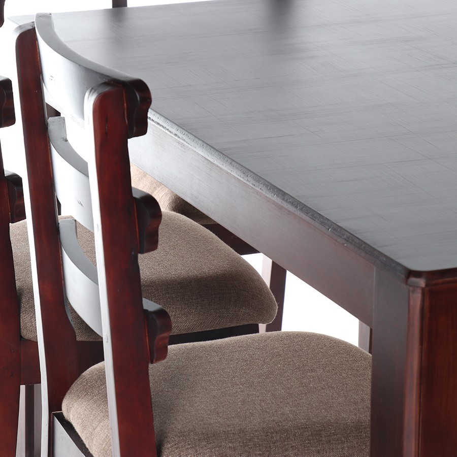 The Nancy dining room set comes in 7-pieces. The chairs are all made of solid pine and will last for many years, and the table is made of sturdy MDF. The chairs’ high backrests and padded, fabric-upholstered seats provide both comfort and support.
